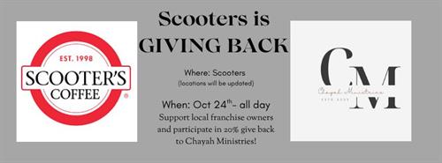 For one day, the Turners are generously donating 25% of profits from these eight Scooter’s Coffee locations: