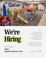 Galliant Autism is a proud BCBA-D owned company, deeply committed to providing compassionate care.We are actively hiring Board Certified Behavior Analysts (BCBAs) and Registered Behavior Technicians (RBTs) at our Omaha locations! Galliant offers competitive pay + benefits, growth opportunities, a work/life balance, & so much more!